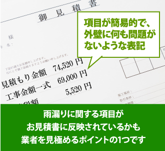 「屋根塗装と外壁塗装をすれば、雨漏りしなくなります」という業者には塗り替え前にどんな作業を行うのか具体的に聞いてみてください。
