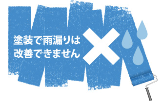 また比較的安価にお住まい全体のメンテナンスが行える屋根外壁塗装ですが、塗装で雨漏りは改善できません。
