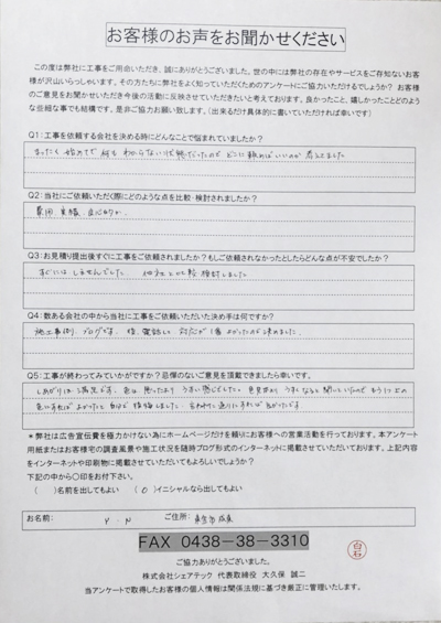 東金市で外壁塗装・屋根塗装を行ったお客様の声