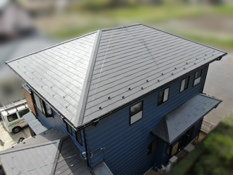 茂原市で遮熱塗料サーモアイSiのクールディープグレーで化粧スレートの屋根塗装!