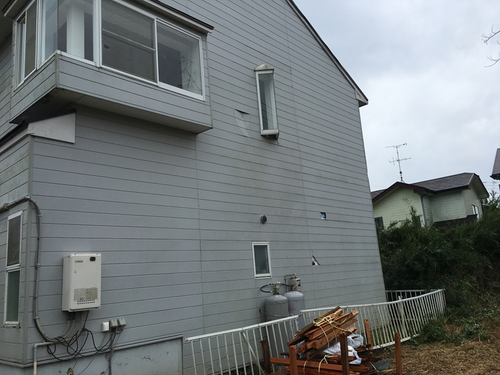 木更津市高柳にて強風により外壁の被害、サイディングの交換工事