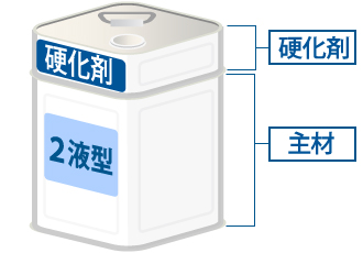 塗料(主材)と硬化剤が別々になっており、使用時に主材と硬化剤を混ぜて使用するものを2液型と言います。