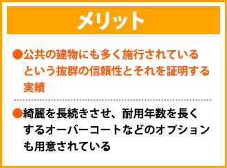 高価でありながらも、頻繁に塗り替えができないビルやマンションといった建物に利用され、耐候性と寿命の長さがしっかりと証明されています。