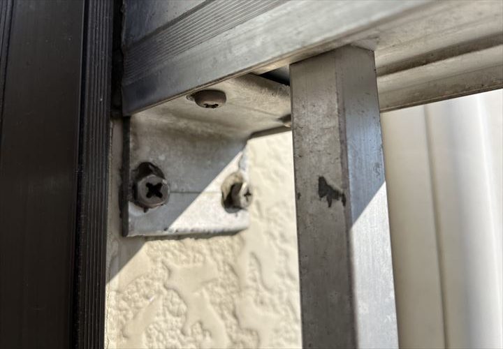 数年前から雨漏りが始まり、そのたびに此処かな?どこかな?とご自分で色々な部分の補修し続けてきたそうですがやはり止まらなかった。 それとは別の事で以前壁を張り替えたときに一旦ベランダを外してベランダを再取付したときに無理やり止めたせいでボルト曲がって取り付けられ穴が開いている。 そこがあまりにも気になる為先に補修して埋めたいとのご希望でした。
